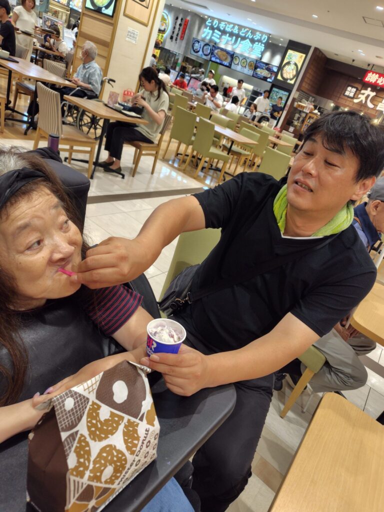 「駄菓子」と行きの車の中で言われていた方、「洋服を」と見に行かれた方、「ドーナツば買う」と前日より言われていた方、「デザート買いたいな」と食品売り場へ行かれる方。皆様、久しぶりのゆめタウンを楽しまれていました。