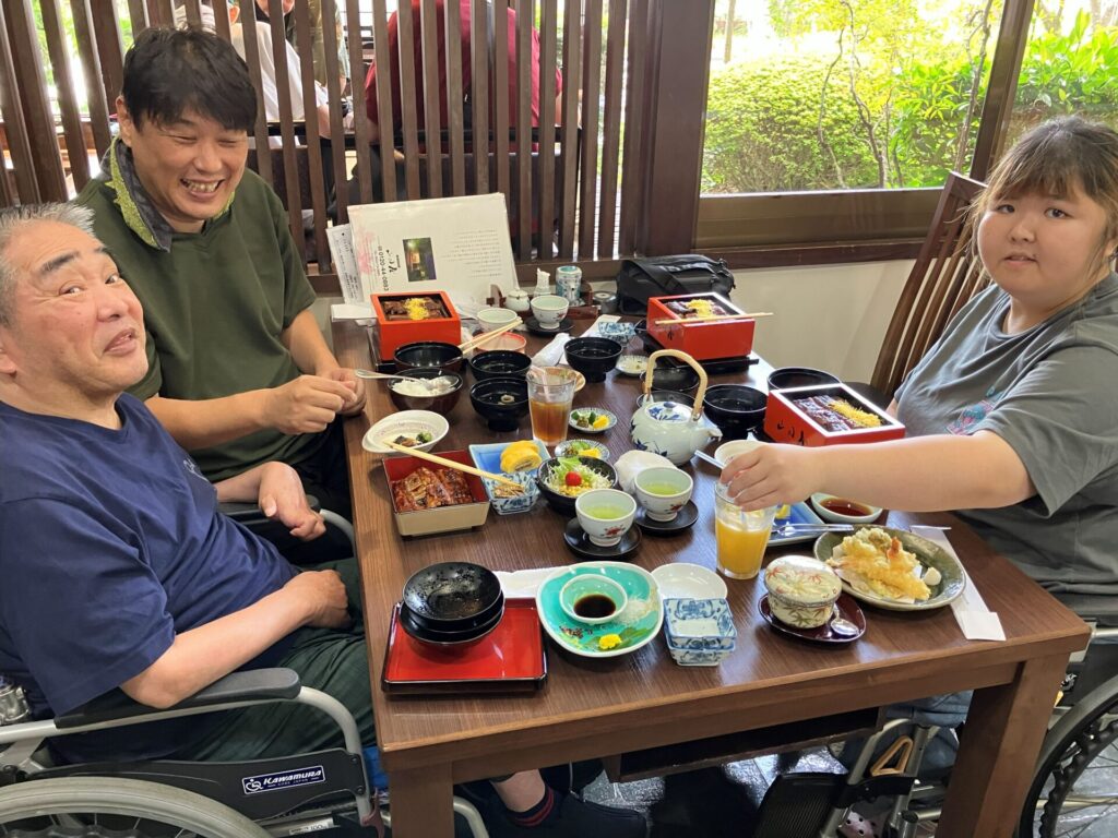 利用者様に希望をきき、「おいしいものを食べたい、贅沢がしたい」という皆様は、柳川にある山田屋へうなぎを食べに行きました。