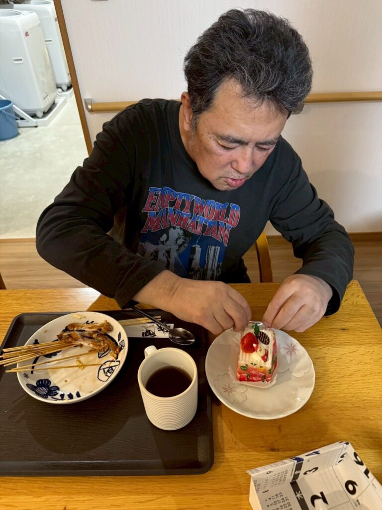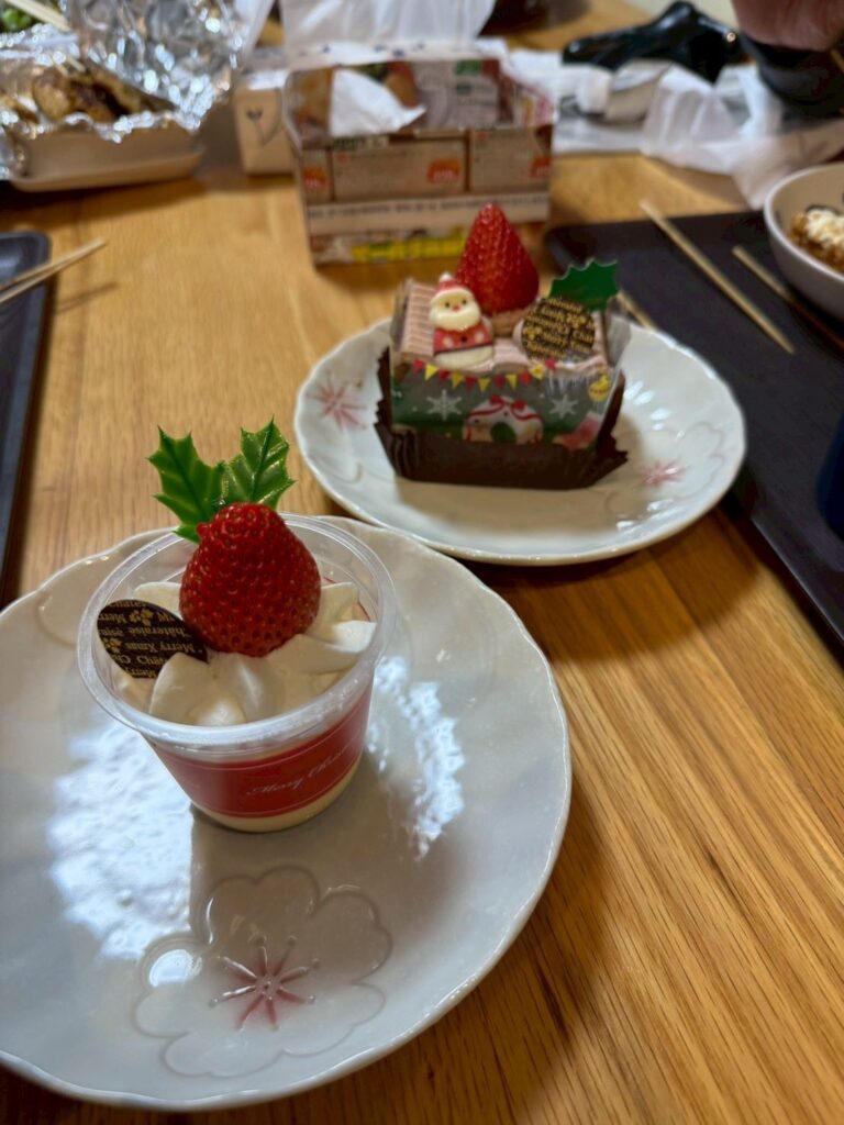 食後には事前に選ばれていたショートケーキ・チョコケーキ・プリンの中から好きな物を食べられました。